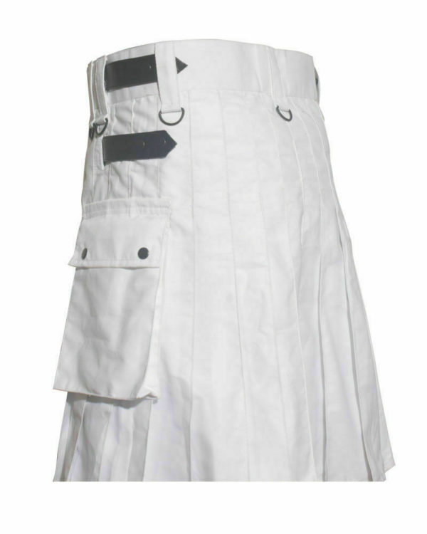 White Leather Strap Utility Kilt For Active Man Kilt Wedding Kilts